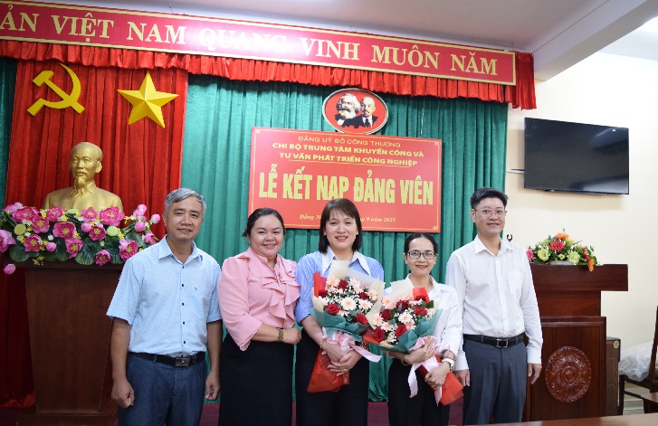 Lễ kết nạp Đảng viên được diễn ra trong không khí trang nghiêm, đúng trình tự, thủ tục của Điều lệ Đảng Cộng sản Việt Nam quy định. Thay mặt Chi bộ, đồng chí Trần Minh Đạt - Đảng uỷ viên Sở Công Thương - Bí thư Chi bộ Trung tâm Khuyến công và Tư vấn Phát triển Công nghiệp đã trao Quyết định kết nạp Đảng và chúc mừng 02 đồng chí Lan Và Nguyên sau thời gian tu dưỡng phấn đấu, rèn luyện đã được vinh dự đứng trong hàng ngũ của Đảng Cộng sản Việt Nam.